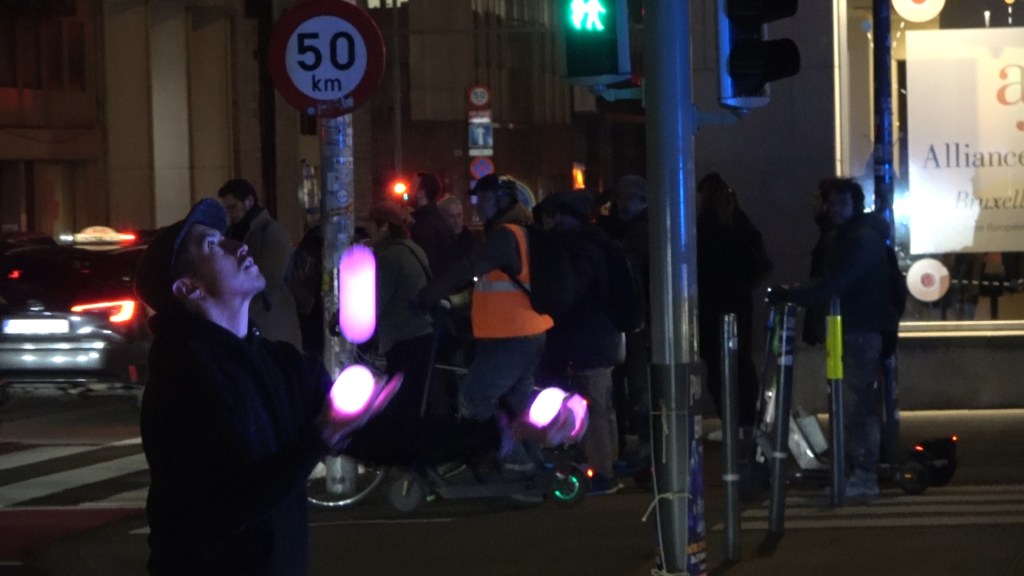 The work documents the everyday lives of Latin American street performers in Brussels…